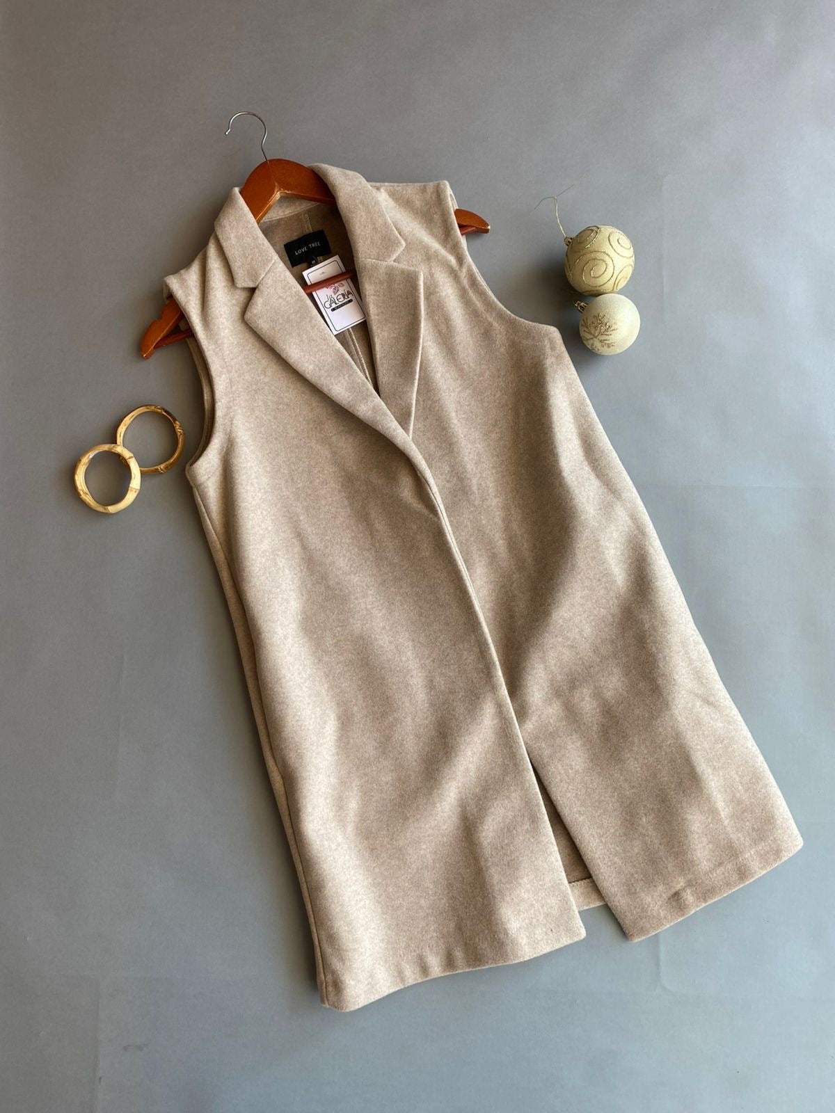 Ensamble sin mangas de LOVE TREE en tela afelpada que proporciona calidez y suavidad excepcionales. Su corte largo y elegante favorece la silueta, mientras que la textura afelpada añade dimensión y sofisticación al look. Ideal para capas versátiles durante las estaciones frías, esta prenda combina funcionalidad con estilo refinado, permitiéndote crear composiciones modernas y cómodas.